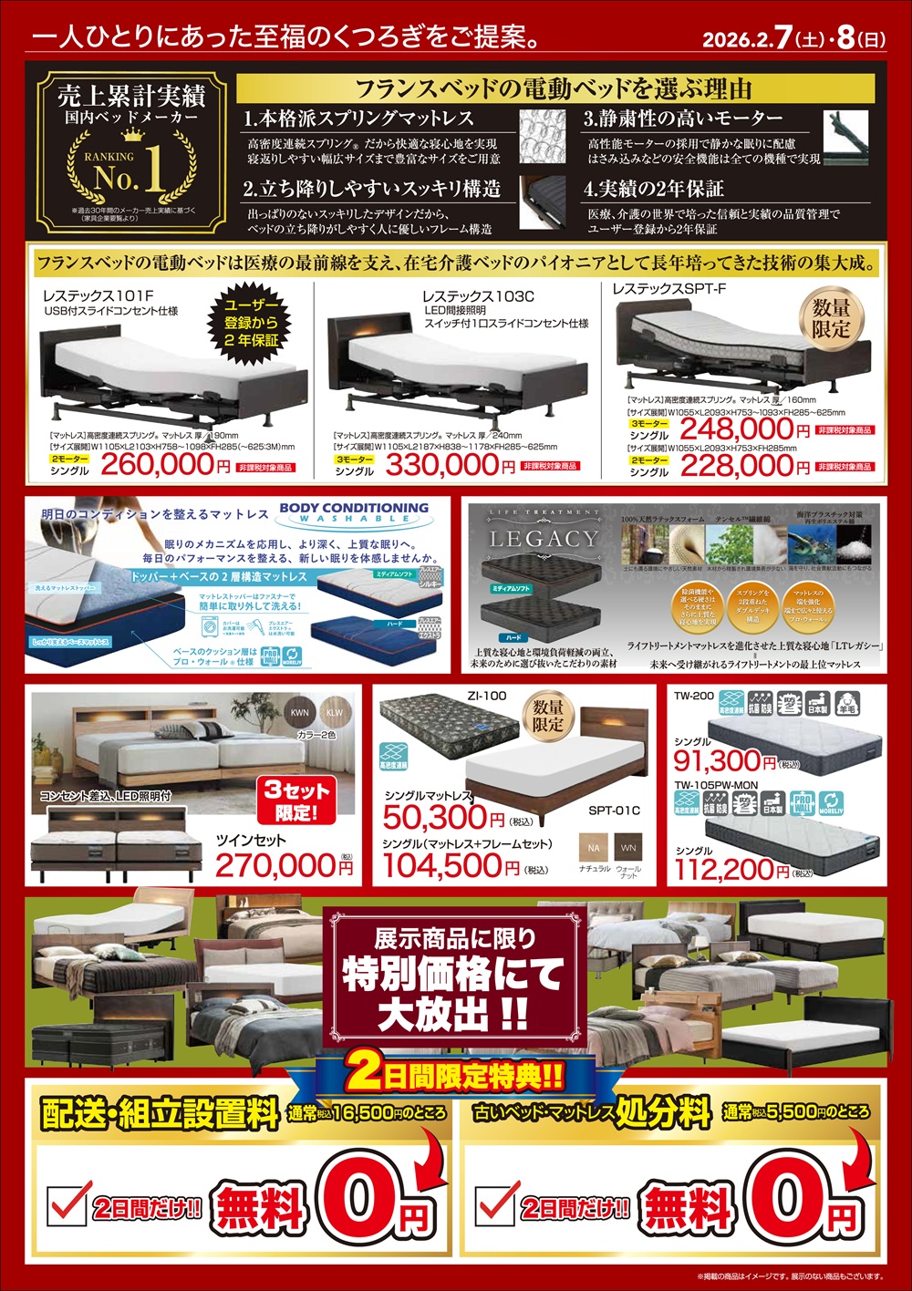 フランスベッドの電動ベッドを、実際に見て・触れて・体験できる2日間。