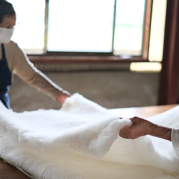 職人が一枚一枚、綿を手で入れて仕立てるお布団。