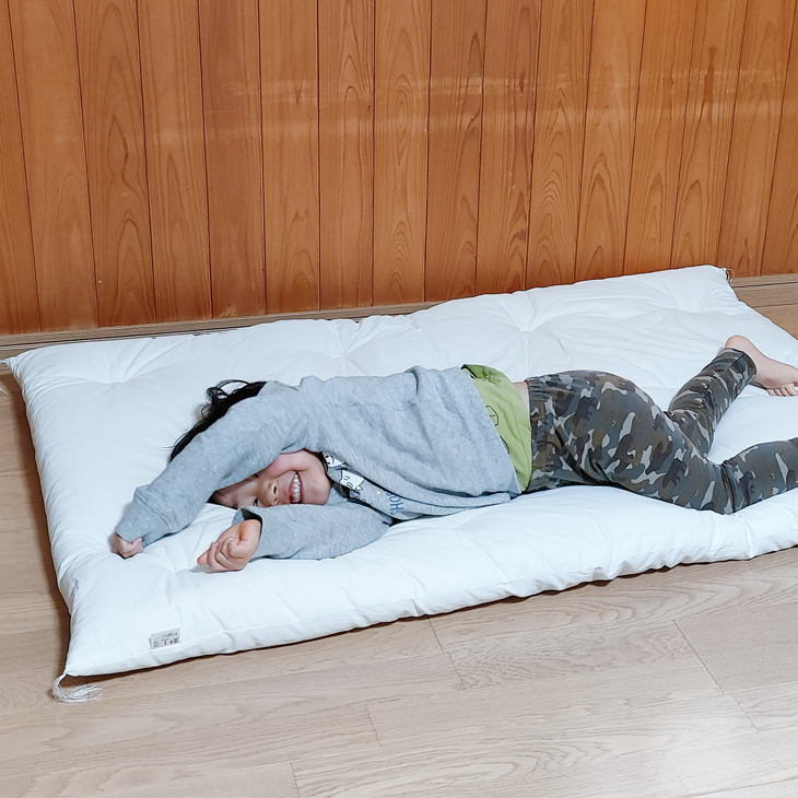 綿は汗をしっかり吸ってくれて、体をやさしく支えてくれます。