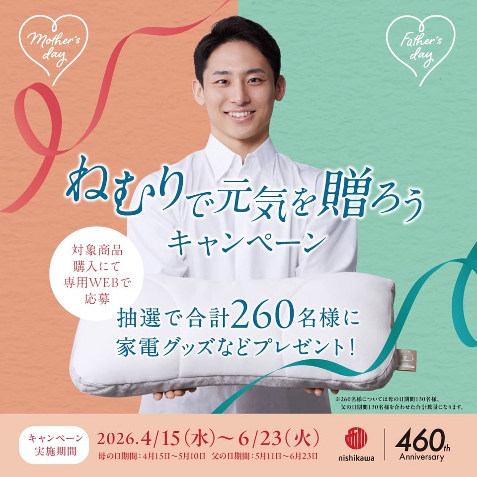 2026年4月15日から5月10日まで、対象商品をご購入頂きWEBでご応募いただいた方の中から抽選で、合計130名様に家電グッズなどが当たるキャンペーンを実施中!